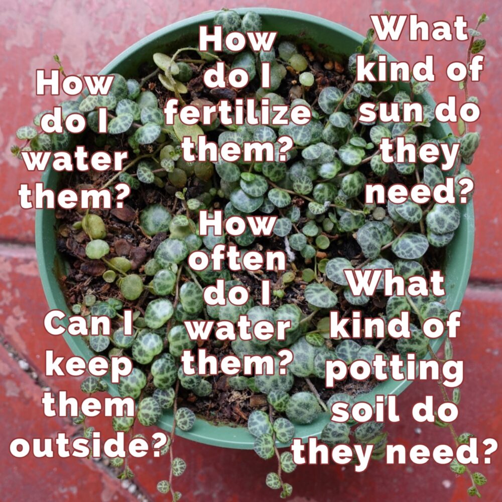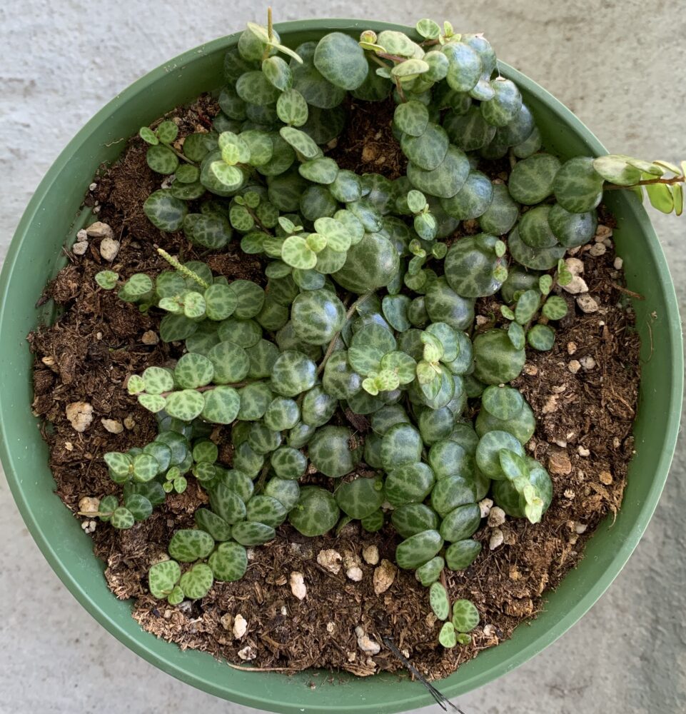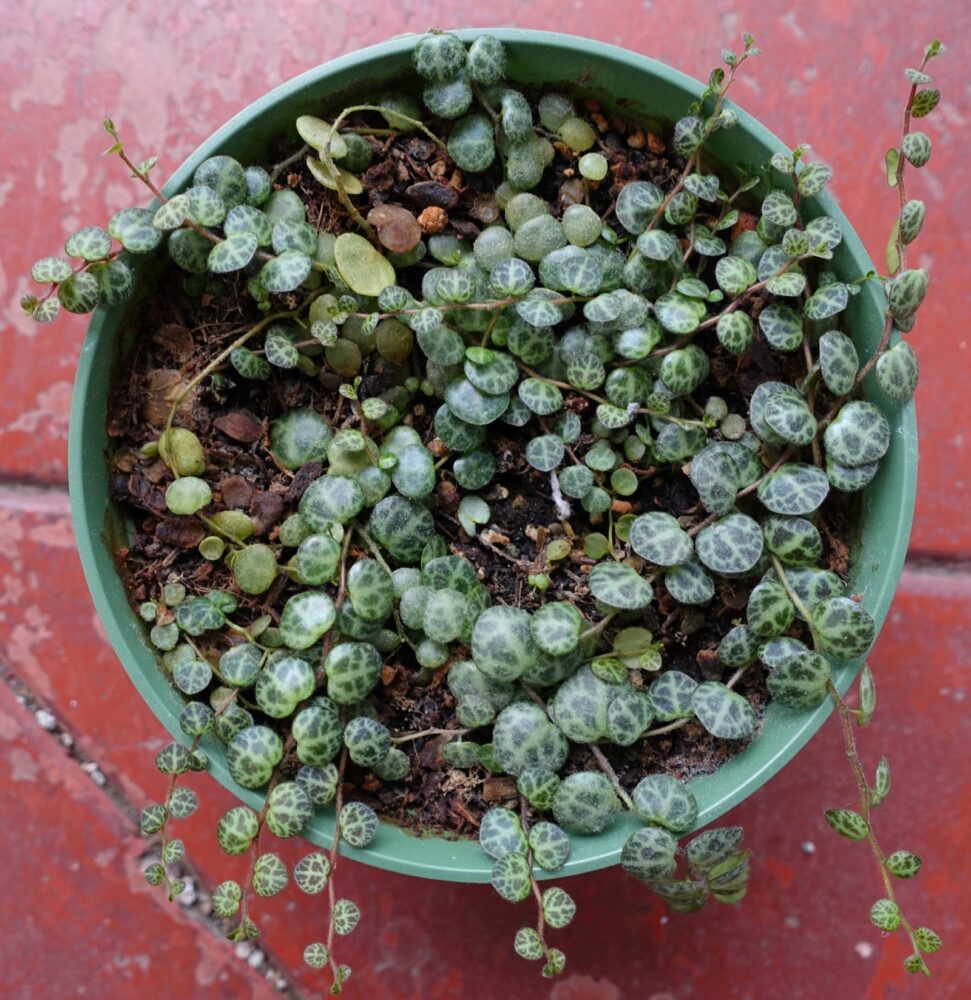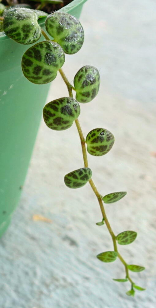 String of Turtles are a succulent plant that is hugely popular these days because the leaves look like the back of turtles, even curving and domes like a turtle shell. If you don’t believe that Turtles are succulent, take a look at a leaf from the side: