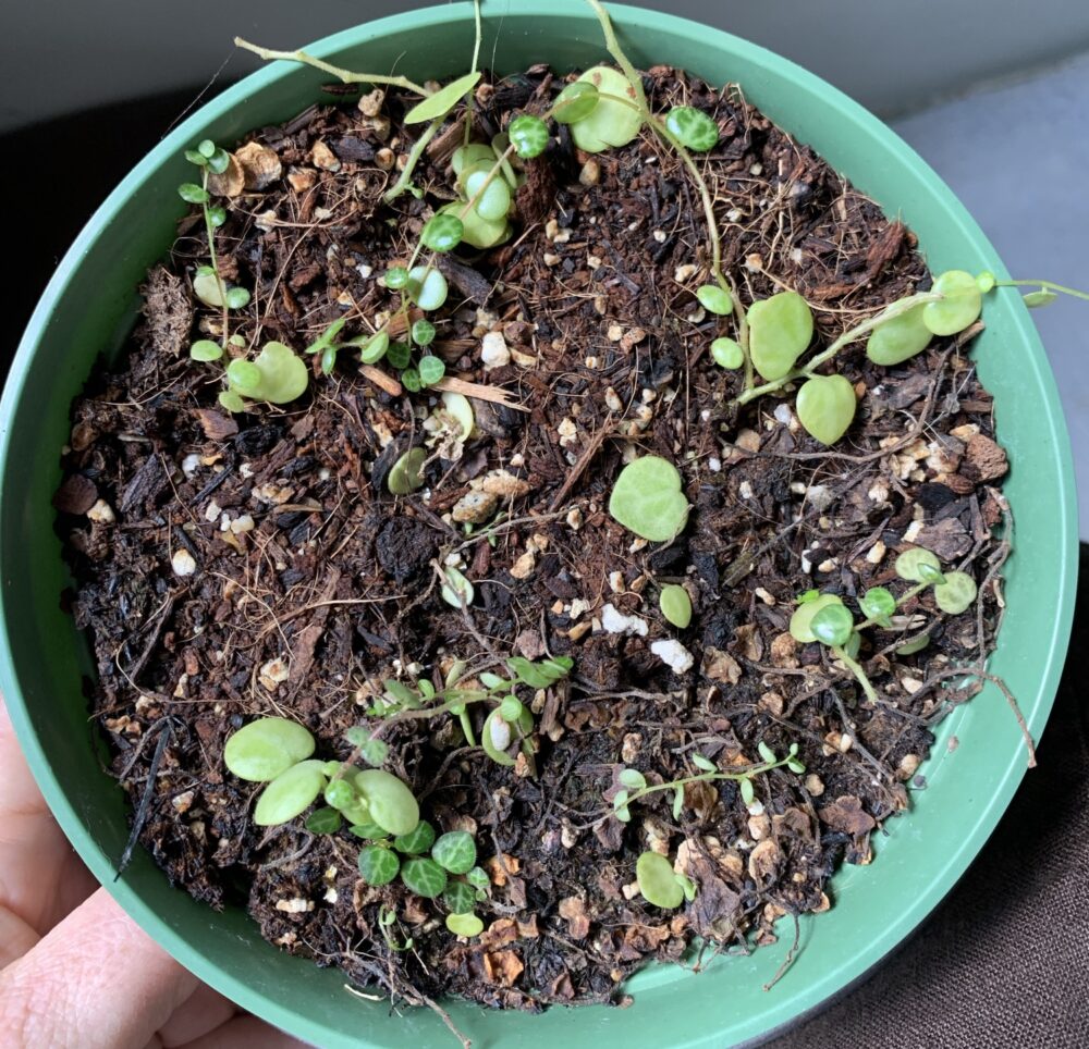 If you aren’t familiar with gritty mix for succulents, you can do a quick search for “Al’s gritty mix” for lots of helpful threads and posts about combining pumice and woody bark (both sieved to roughly 1-2 mm in diameter). For many string plants (String of Pearls, Dolphins, etc.), they benefit greatly from the addition of coconut coir to the planting mix, perhaps because it allows their shallow roots to grow more easily than the larger pumice and bark pieces. I aim for about 50% coir, 25% each of pumice and bark.