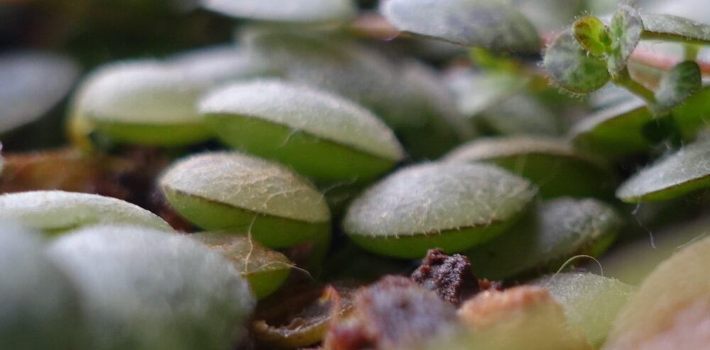 I know, I know, every 3-6 weeks? Like I said, they are deceptively succulent and you will absolutely kill them if you water them every week. They can handle being dry much better than they handle too much water, so as you get used to taking care of your Turtles, err on the side of too little water. The wrinkling of the leaves is very subtle, so using the weight of the pot and the dryness of the top inch or so of the soil will be a better indication of when to water them in the beginning.